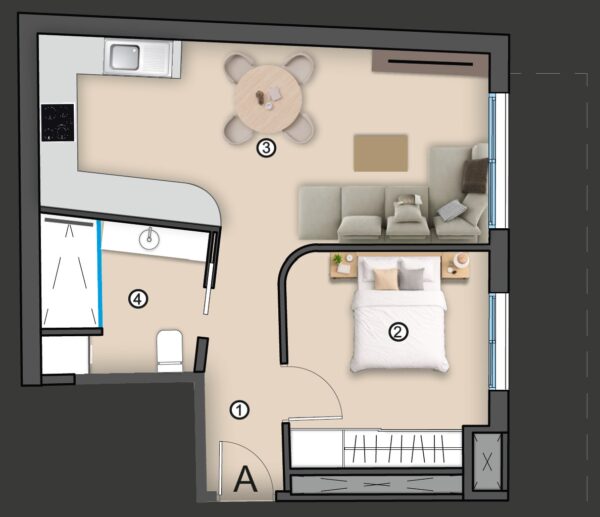 „A típusú” apartman a földszinten 158 000 euróért