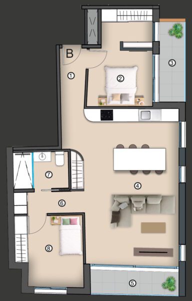 „B típusú” apartman a 2. emeleten 255 000 euróért